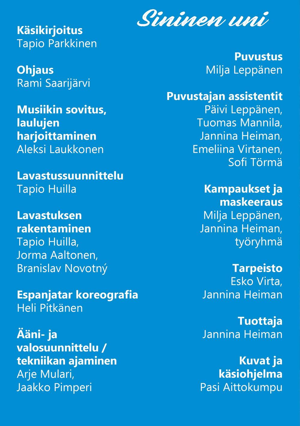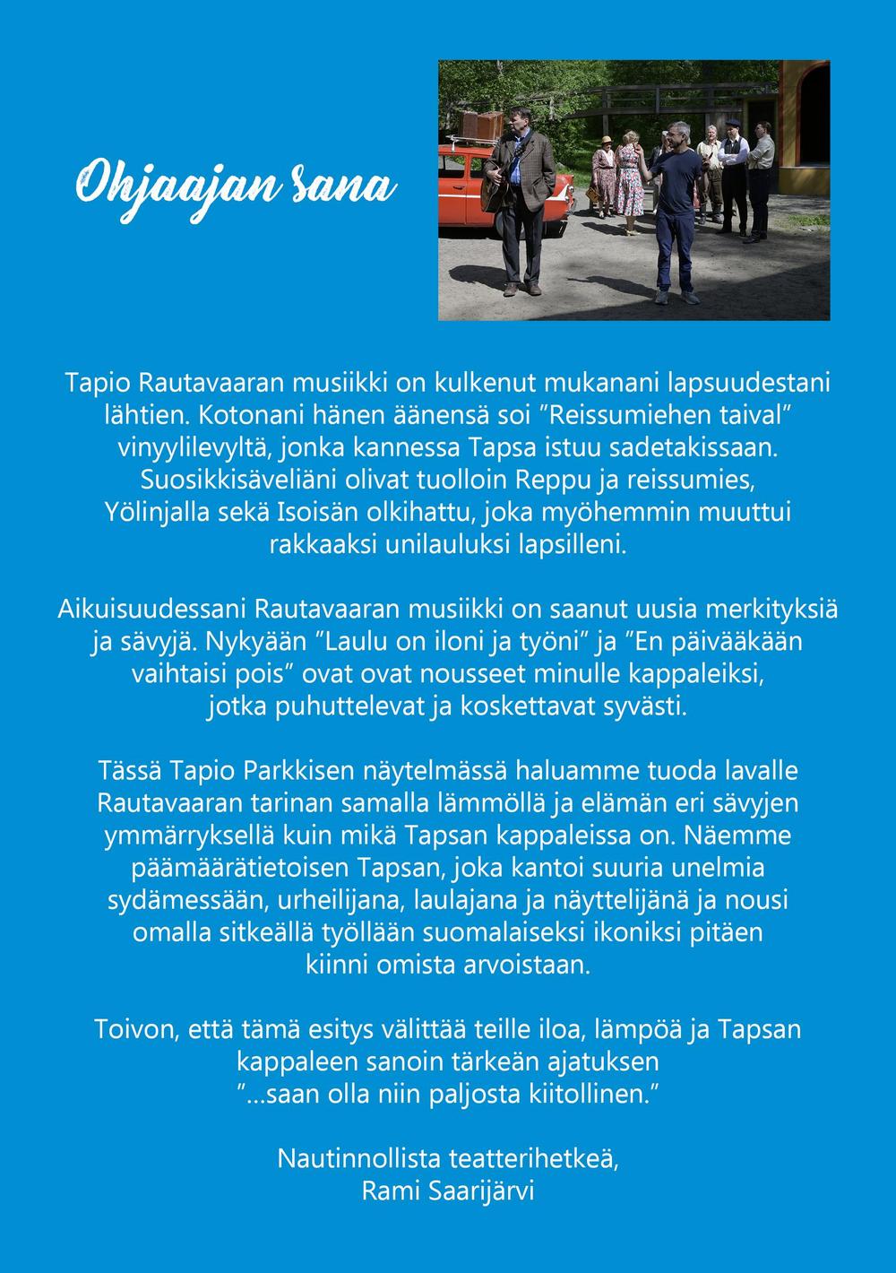 Mainosmateriaalia on saatavilla mm. teatterin toimiston kautta: